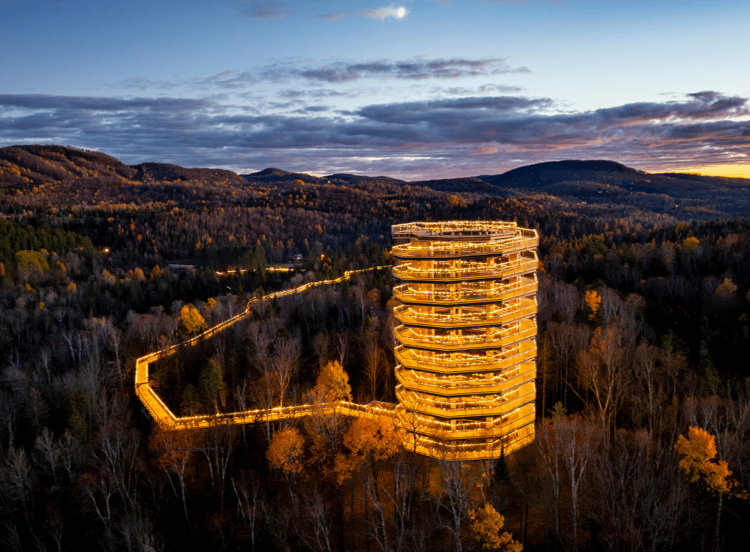 Accédez au sentier des cimes pour une marche immersive au-dessus de la forêt. Sa tour d'observation spectaculaire offre un panorama unique sur les Laurentides.